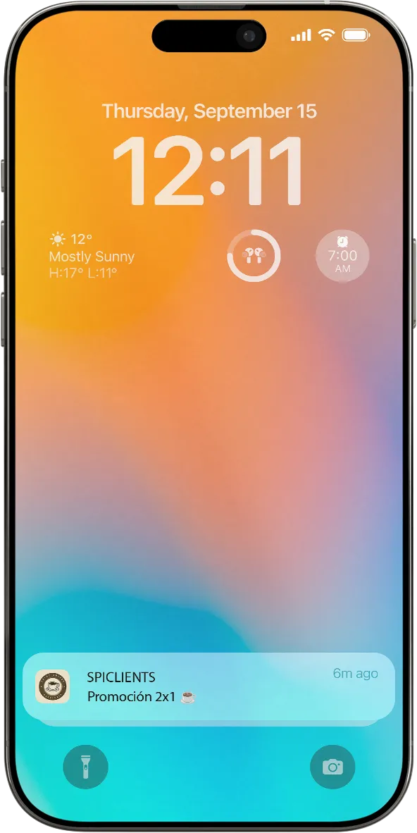 Aprovecha la ubicación de tus clientes para enviar notificaciones en tiempo real cuando estén cerca de tu negocio. Recuérdales tus promociones o invítalos a visitarte justo cuando más probabilidades hay de que entren.
