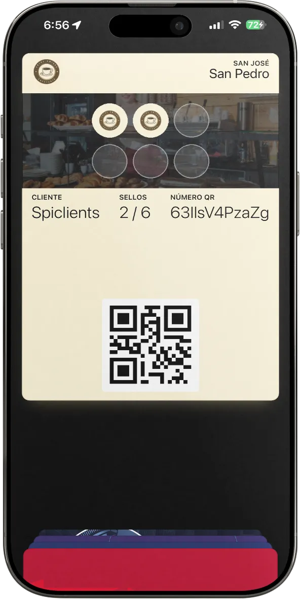Con Spiclients, el proceso para que tus clientes se unan a tu programa de fidelización es rápido, intuitivo y sin fricción. En menos de un minuto pueden tener su tarjeta en su celular y empezar a acumular puntos o sellos.